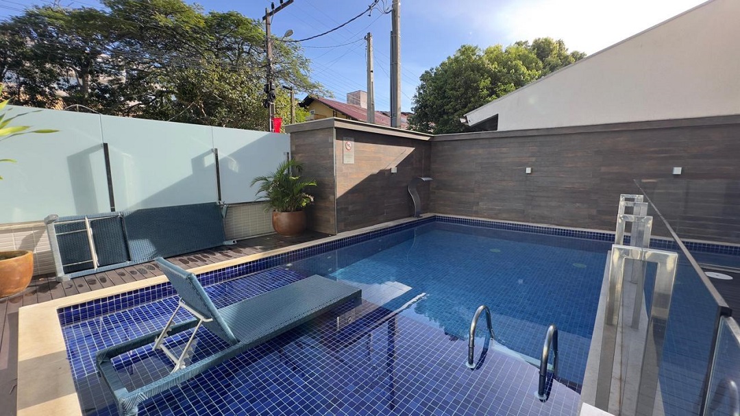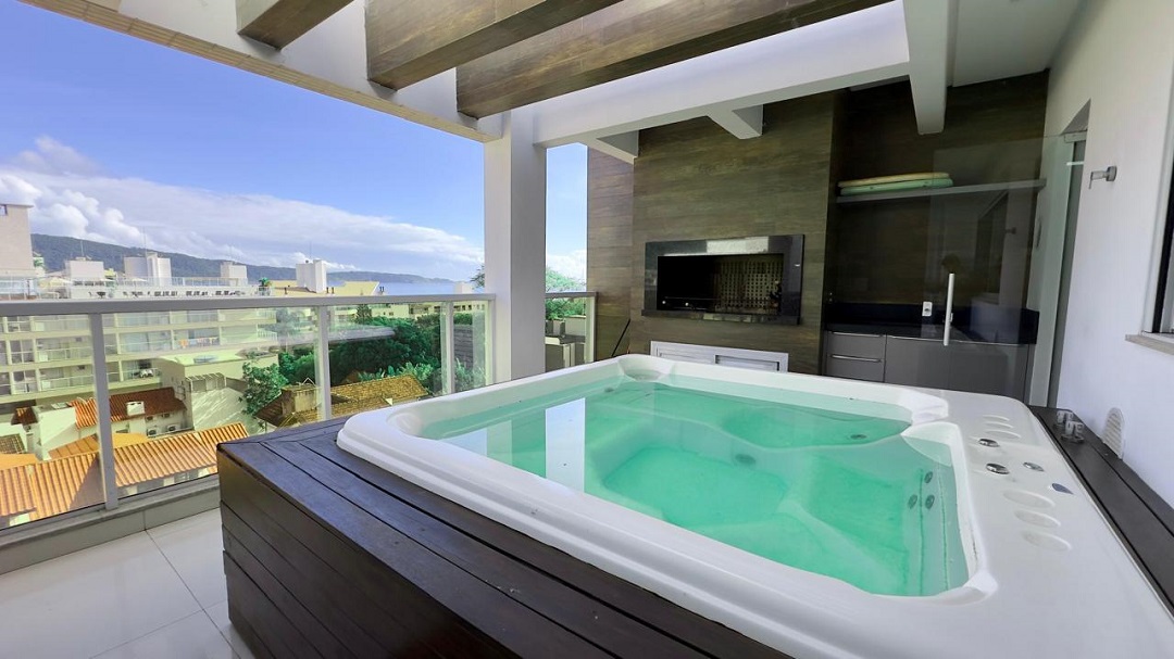 Área de lazer com hidromassagem e uma vista de tirar o fôlego.